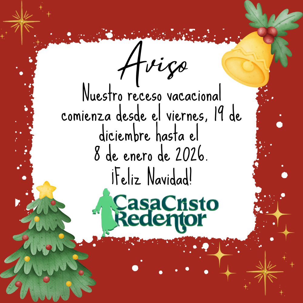 RECESO NAVIDEÑO 2025-26 Publicado porCasa Cristo Redentor19 Dic 202519 Dic 2025Publicado en Sin categoría Comparte: Haz clic para compartir en X (Se abre en una ventana nueva) X Haz clic para compartir en Facebook (Se abre en una ventana nueva) Facebook Me gusta Cargando... Publicado por Casa Cristo Redentor Centro de Desarrollo Integral en Aguas Buenas, Puerto Rico. Ver más entradas